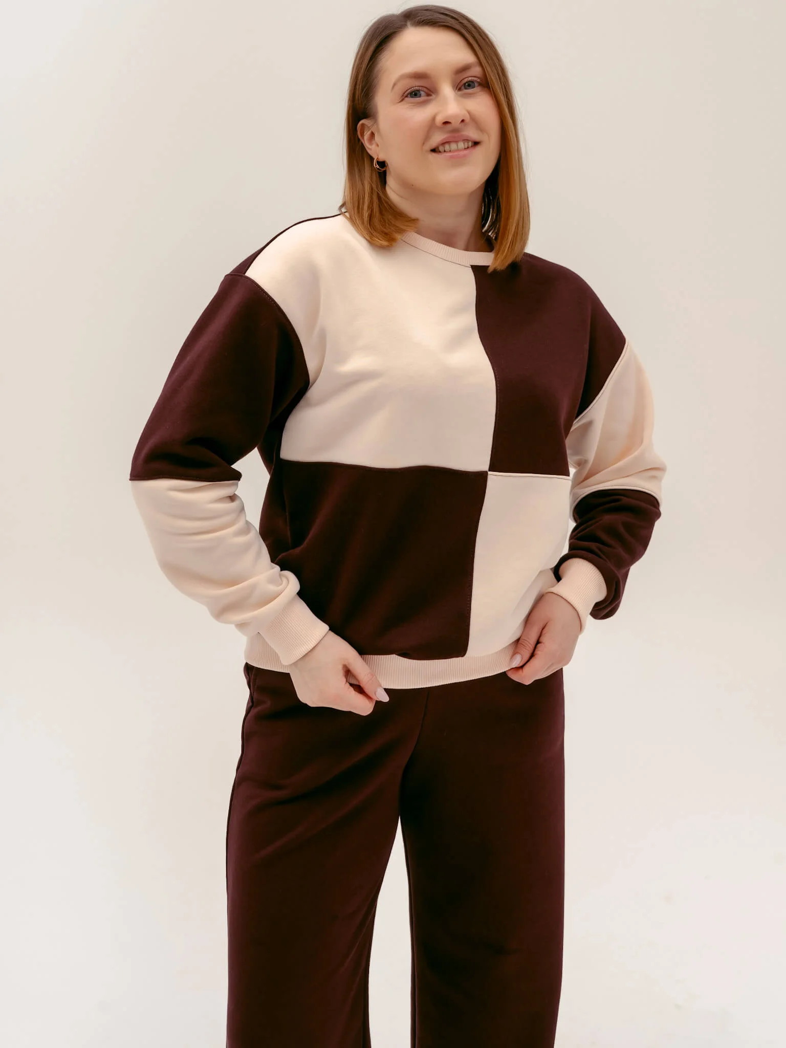 Світшот має вільний крій і манжети з дов’язу, що додає образу акуратності та завершеності. Двоколірний дизайн дозволяє створити унікальний варіант, обравши поєднання кольорів.